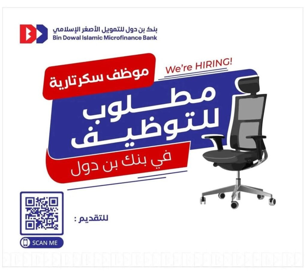 * يعلن بنك بن دول للتمويل الأصغر الإسلامي عن حاجته ( لموظف سكرتارية ) وفقاً للشروط التالية :