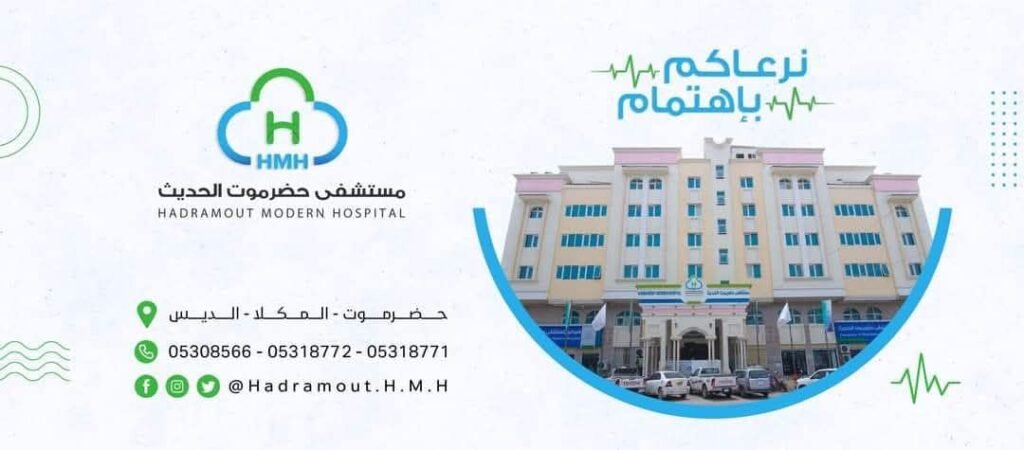 مستشفى حضرموت الحديث هو مستشفى خاص يقع في مدينة المكلا، حضرموت، اليمن. يقدم المستشفى خدمات صحية متكاملة على مدار 24 ساعة، ويتميز بمساحة استيعاب واسعة للحالات الطارئة وكادر طبي ذو كفاءة عالية، بالإضافة إلى بيئة مجهزة بأرقى المعايير الصحية.