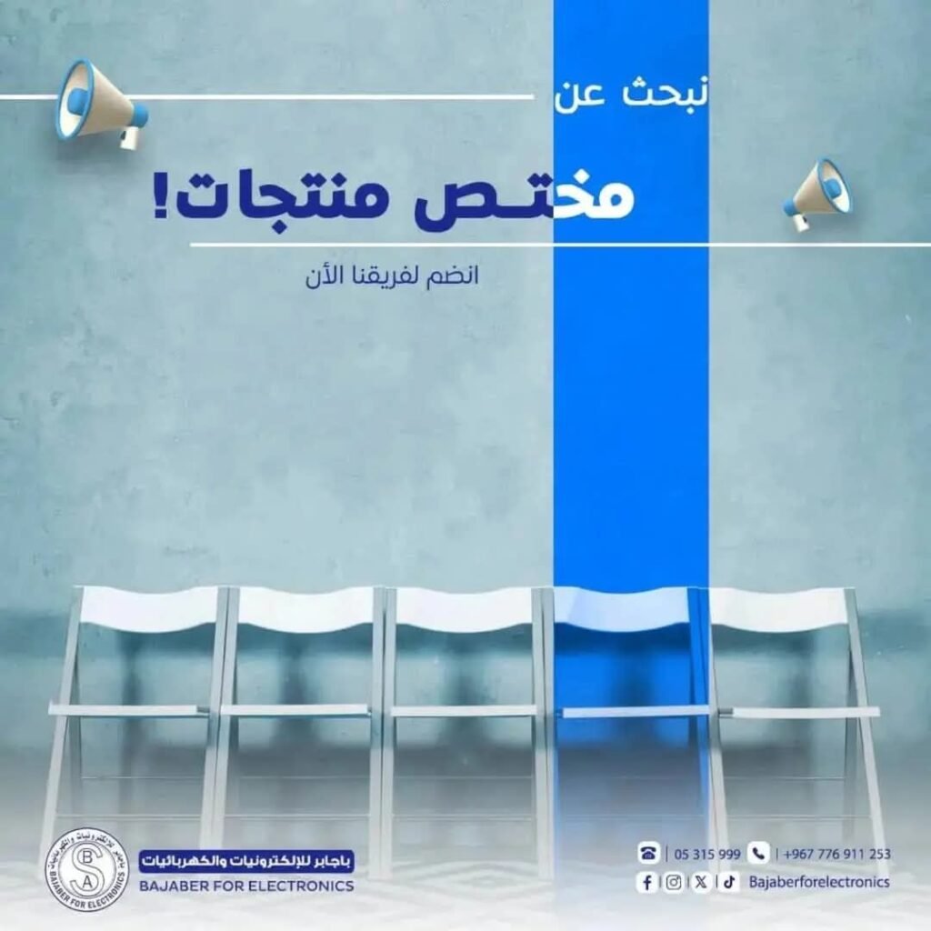 تُعلن مؤسسة باجابر للإلكترونيات والكهربائيات عن فتح باب التوظيف لوظيفة مختص_منتجات للانضمام إلى فريق المشتريات.
