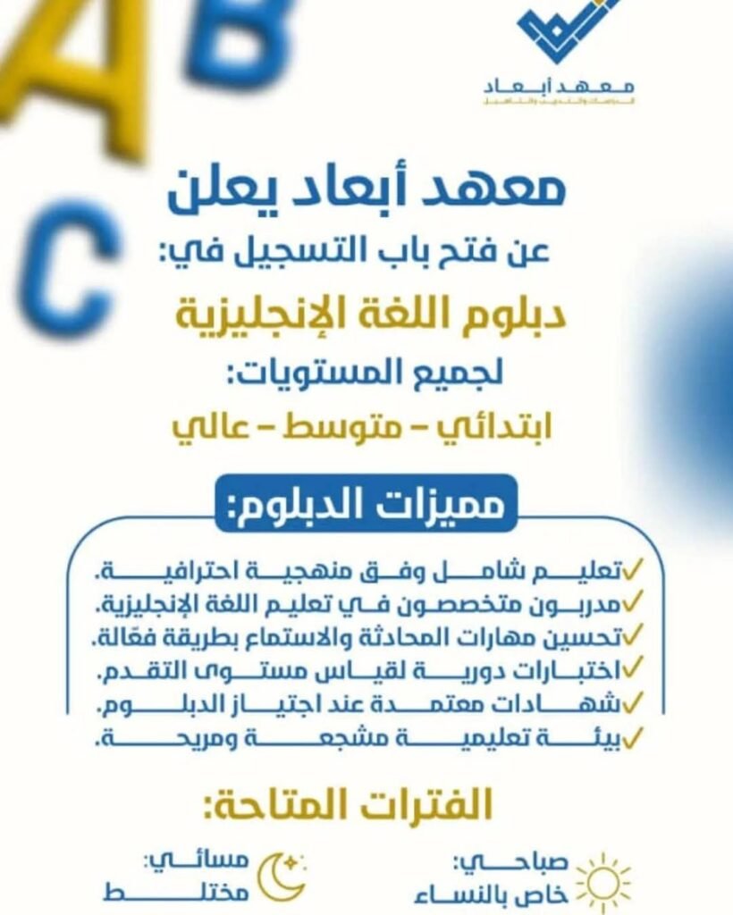 أبدأ رحلتك في إتقان اللغة الإنجليزية مع معهد أبعاد.